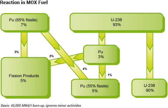- MOX fuel is manufactured from plutonium recovered from used reactor fuel, mixed with depleted uranium.