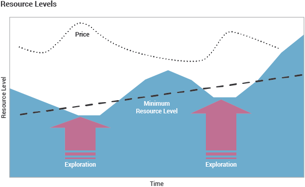 Another way to understand resource sustainability is in terms of economics and capital conservation. Under this perspective, mineral resources are not so much rare or scarce as they are simply too expensive to discover if you cannot realize the profits from your discovery fairly soon. Simple economic considerations therefore discourage companies from discovering much more than society needs through messages of reduced commodity prices during times of oversupply. Economically rational players will only invest in finding these new reserves when they are most confident of gaining a return from them, which usually requires positive price messages caused by undersupply trends. If the economic system is working correctly and maximizing capital efficiency, there should never be more than a few decades of any resource commodity in reserves at any point in time.