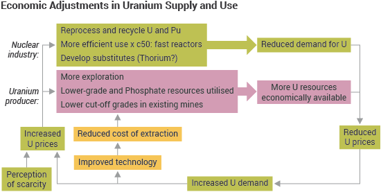 Substantially derived from 2003 WNA Symposium paper by Colin MacDonald, Uranium: Sustainable Resource or Limit to Growth? – supplemented by his 2005 WNA Symposium paper and including a model Economic adjustments in the supply of a 'non-renewable' resource from Ian Hore-Lacy.