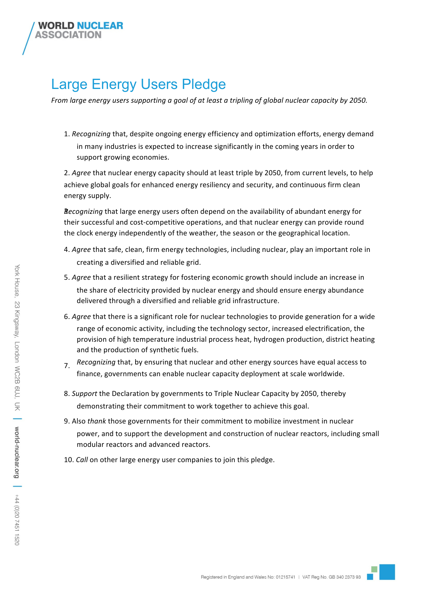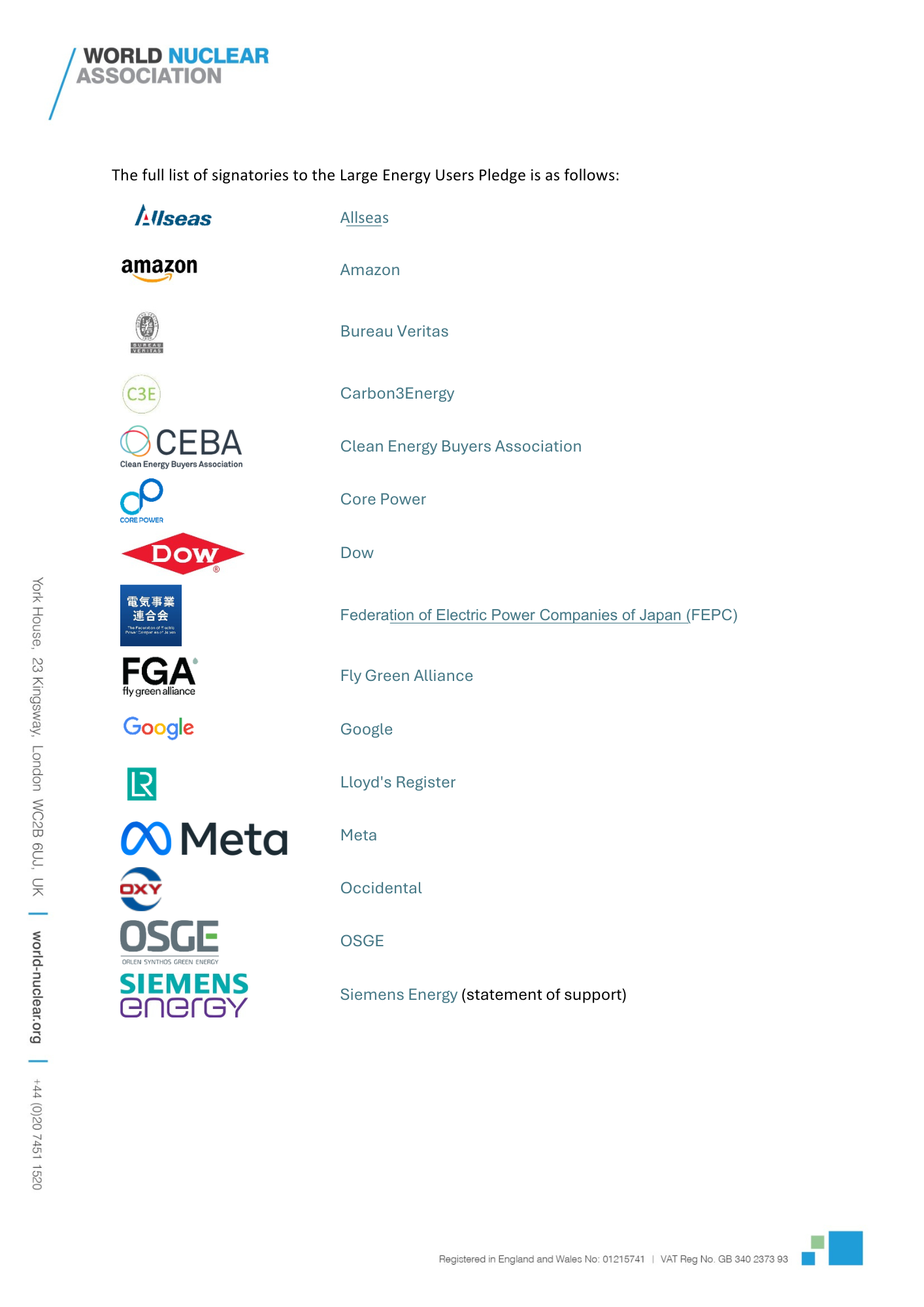 For more information on the pledge, and the corporations endorsing it, please visit Major Global Companies Pledge Historic Support to Triple Nuclear Energy.