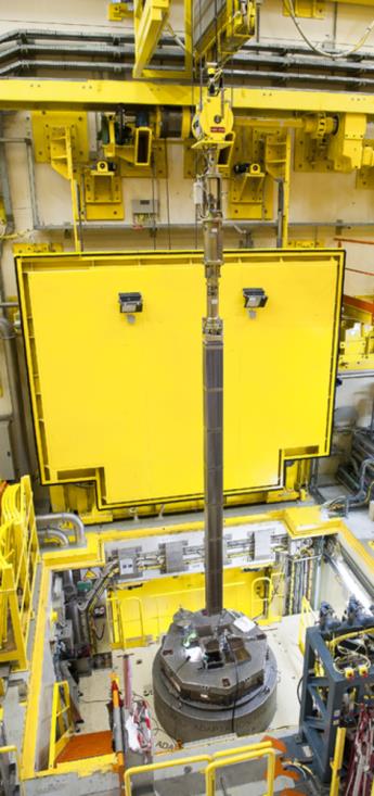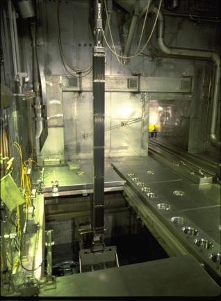Fuel assembly being lowered into the cooling pit in T0 dry loading facility, France (Image: Sidney Jezequel, Orano)